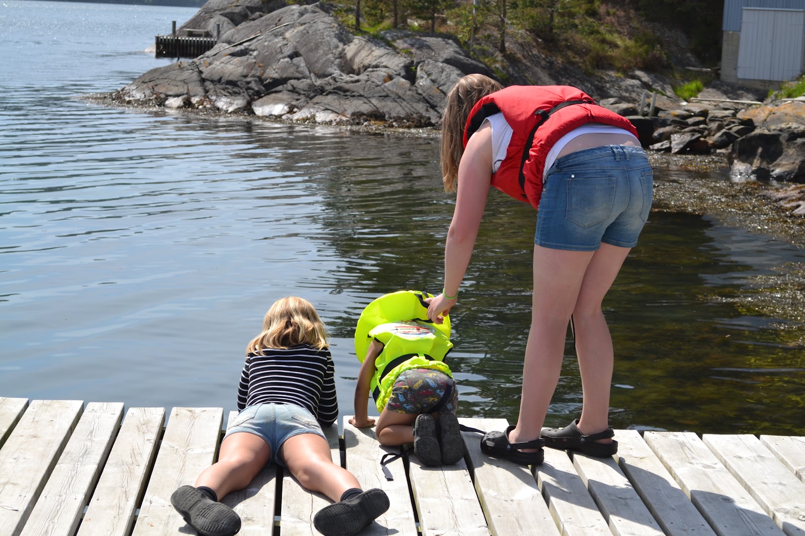 This means that the children are either off running through meadows, exploring the woods, swinging off rope swings, visiting the local farmers, fishing, jumping off the quay or back of a boat, rowing a dingy or swimming in the fjord.