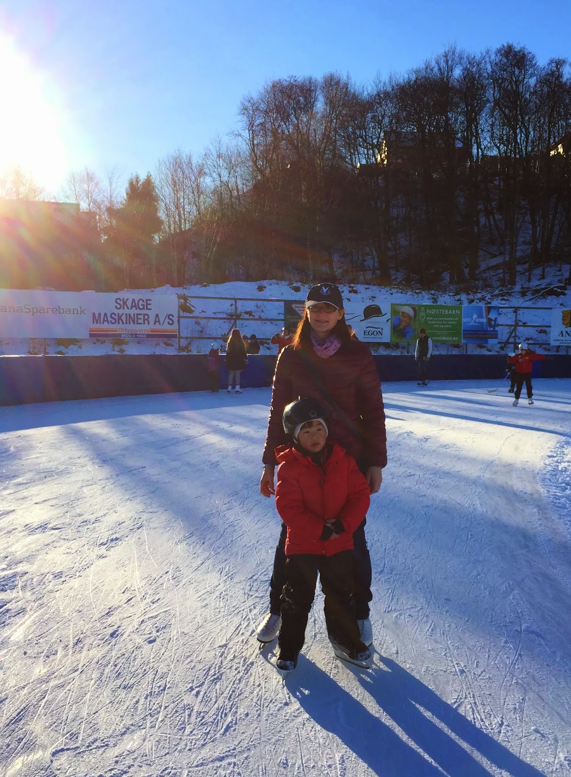 As the boys have both grown, we had to try a few pairs of ice skates from our collection to see what we had that fitted. Tim has now take over Stig's old ice skates - shocking... how can my boy be so big??? Tae is now in an old pair of Tim's (with an extra pair of woolen socks;)